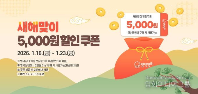행사는 이달 16일부터 23일로, 이 기간 영덕장터 회원 중 선착순 1,000명에게 영덕군 농특산물 5,000원 할인 쿠폰이 지급한다.