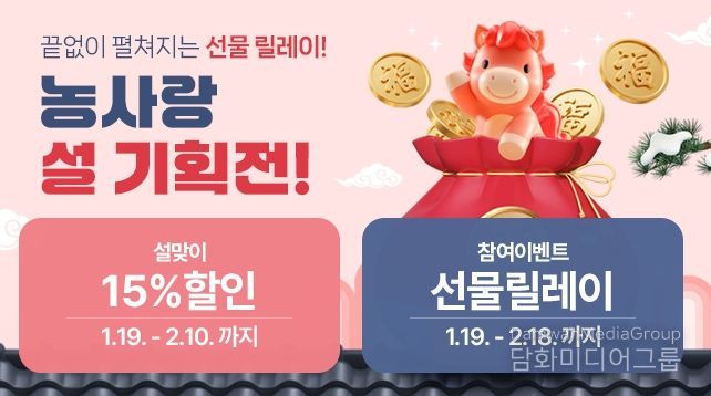 시민행정신문 이세훈 기자 | 충남도 대표 농특산물 온라인 쇼핑몰 충남농사랑이 한 해의 시작을 알리는 설 명절을 맞아 도내 농특산물의 소비 촉진, 지역 농가의 소득 증대와 함께 도민의 합리적이고 건강한 소비를 위해 19일부터 2월 10일까지 설 명절 기획전을 진행한다.
