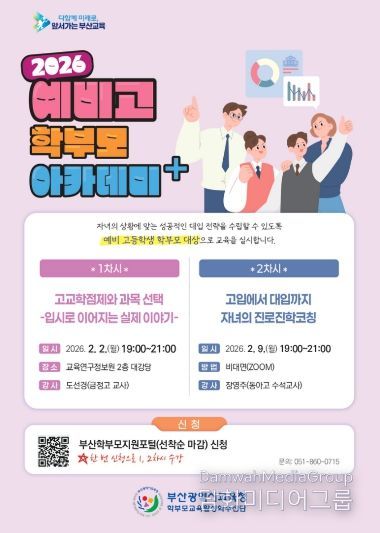 시민행정신문 기자 | 부산광역시교육청은 자녀의 상급학교 진학을 앞둔 예비 초·중·고 학부모의 불안감을 해소하고, 변화하는 학교생활과 교육과정에 대한 이해를 돕기 위해 다음달 2일부터 '학부모 아카데미+(플러스)' 예비과정을 운영한다고 밝혔다.
