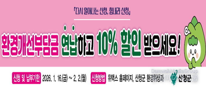 시민행정신문 강갑수 기자 | 산청군은 환경개선부담금 연납제를 운영한다고 19일 밝혔다.