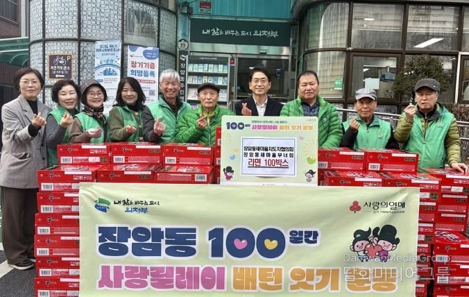 시민행정신문 강갑수 기자 | 의정부시 장암동주민센터는 1월 15일 장암동 새마을지도자협의회·새마을부녀회가 겨울철 어려운 이웃들을 위해 라면 100상자를 전달하며 ‘100일간 사랑릴레이 배턴 잇기’에 동참했다고 밝혔다.