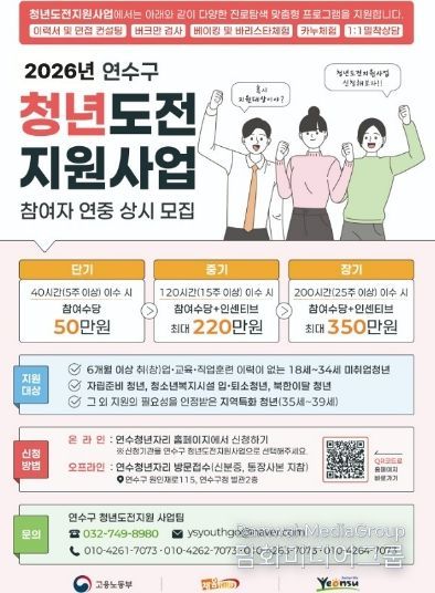 시민행정신문 강갑수 기자 | 연수구는 청년들의 경제 활동과 노동시장 진입을 돕기 위해 ‘2026년 청년도전지원사업’ 참여자를 모집한다.