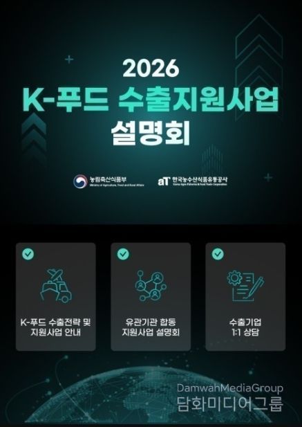 시민행정신문 이세훈 기자 | 농림축산식품부는 K-푸드의 글로벌 진출 확대를 위해 전년보다 900억원 증가한 7,070억원 규모의 2026년 K-푸드 수출지원사업 설명회를 1월 23일 서울 과학기술컨벤션센터에서 개최한다고 밝혔다.