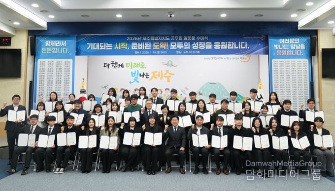 시민행정신문 강갑수 기자 | 제주특별자치도는 19일 오전 도청 탐라홀에서 ‘2026년 상반기 정기인사 임용장 수여식’을 개최하고 민선 8기 성과 완성을 위한 조직 정비를 마무리했다.