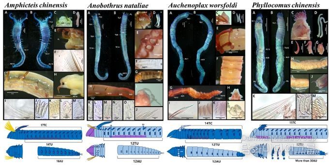 이번에 새롭게 보고된 종은 ▲Anobothrus nataliae ▲Amphicteis chinensis ▲Auchenoplax worsfoldi ▲Phyllocomus chinensis 등 4종이다.