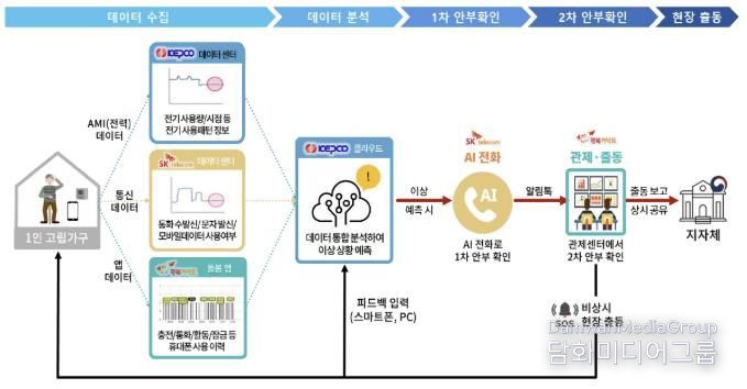 이 서비스는 한국전력공사, SK텔레콤, 행복커넥트가 함께 참여한다. 1인 가구에서 일정 기간 휴대폰 통신기기의 전기 사용량 변화가 감지되지 않으면 이상 상황으로 판단하고 단계별 확인 절차에 들어간다.