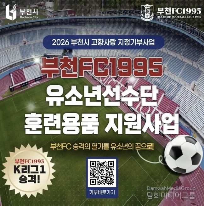 이번 지정기부사업은 10월까지 모금을 진행하며, 대상은 ‘부천FC1995 유소년 선수단 훈련용품 지원’(2천만 원)과 ‘맘(Mom)편한 택시 고향사랑 더하기’(3천만 원) 총 2개 사업이다.