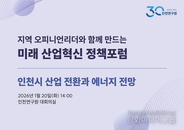 시민행정신문 강갑수 기자 | 인천연구원은 2026년 1월 20일 오후 2시, 연구원 대회의실에서 '2026년 제1차 인천 미래 산업혁신 정책포럼'을 개최한다.