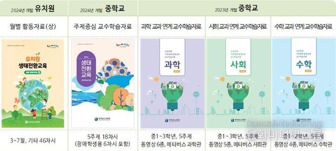 2023년부터 올해까지 총 15종의 단계별 자료를 개발해 왔으며, 올해는 현장 교사들이 1년간 학교에서 실천한 생태전환교육 연구 성과를 바탕으로 ‘생태전환교육 교수·학습 자료 5종’을 완성했다.