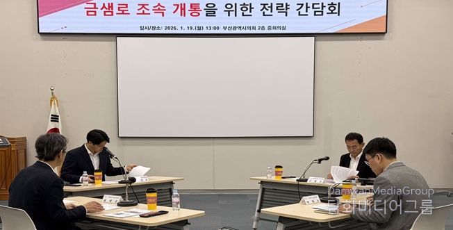 시민행정신문 기자 | 부산광역시의회 이준호.이종진 의원은 1월 19일 오후 1시, 시의회 중회의실에서 '금샘로 조속 개통을 위한 전략 간담회'를 개최했다. 이번 간담회는 산성터널 접속도로 미개설 구간인 금샘로 공사의 지연 원인을 점검하고, 조속한 사업 추진을 위한 실질적인 해결 방안을 모색하기 위해 마련됐다.