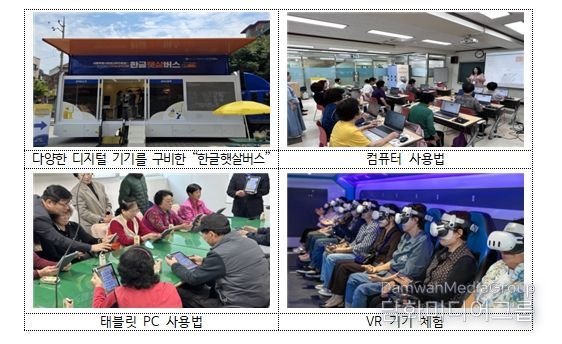 첫째, 찾아가는 인공지능(AI)·디지털 문해교육 “한글햇살버스” 운영 지역을 확대해(5개→9개 내외) 교육 접근성을 높인다. 신체·지리적 여건 등으로 기존 문해교육 참여가 어려웠던 학습자도 “한글햇살버스”를 통해 거주지 내 경로당·마을회관 등에서 무인안내기(키오스크)나 스마트폰의 배달·쇼핑앱 등 디지털 기기·기술 활용 방법을 배울 수 있다.