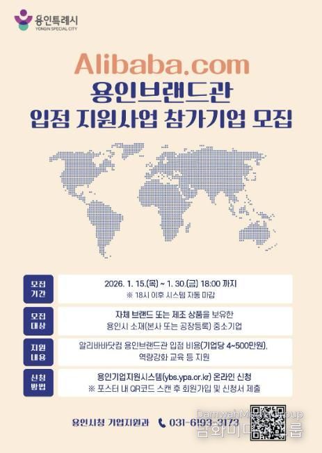 시민행정신문 강갑수 기자 | 용인특례시는 오는 1월 30일까지 B2B(기업 간 거래) 플랫폼 알리바바닷컴 내 ‘용인브랜드관’(YoGo) 입점 참가기업을 모집한다고 20일 밝혔다.