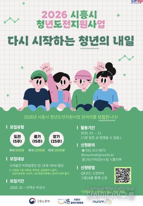 시민행정신문 강갑수 기자 | 시흥시는 취업과 사회 진출에 어려움을 겪고 있는 청년들의 재도전을 지원하기 위해 ‘2026년 청년도전지원사업’ 참여자 156명을 모집한다.