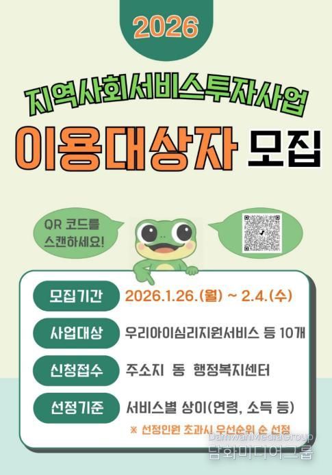 시민행정신문 강갑수 기자 | 수원특례시는 1월 26일부터 2월 4일까지 ‘2026년 지역사회 서비스 투자사업’ 이용자를 모집한다.