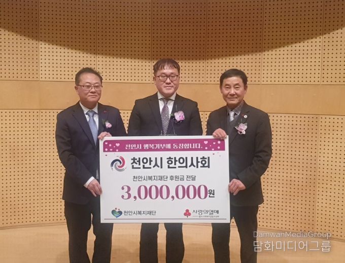 이운형 천안시복지재단 이사장은 “지속적으로 따뜻한 나눔을 실천해주신 천안시한의사회에 감사드린다”며 “소중한 후원금은 도움이 필요한 이웃들에게 전달할 것”이라고 말했다.