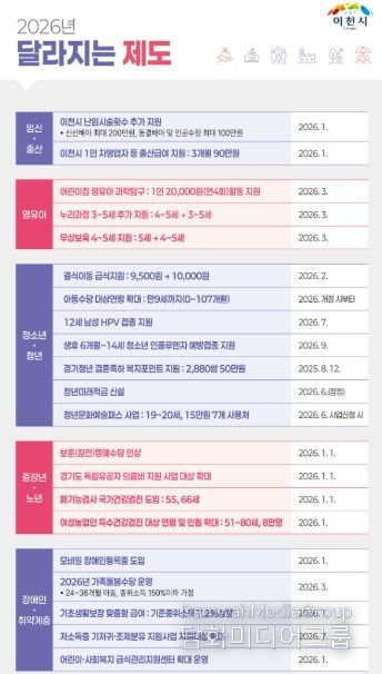 시민행정신문 강갑수 기자 | 이천시가 2026년 새해를 맞아 시민 생활과 밀접한 달라지는 제도를 발표했다.
