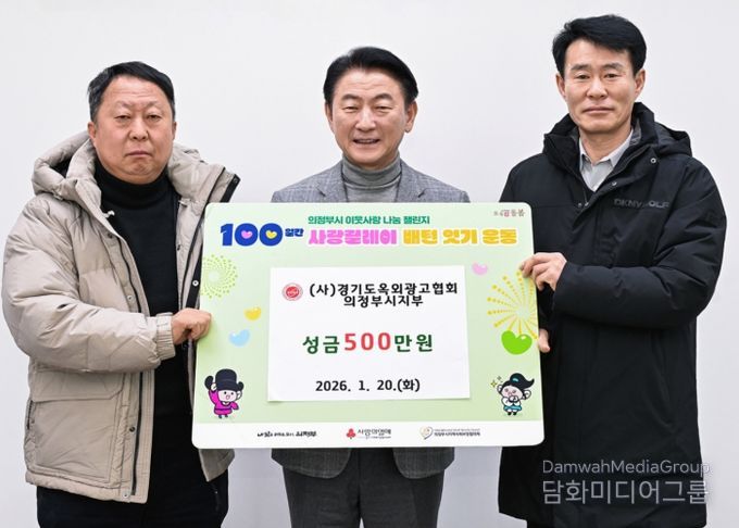 시민행정신문 강갑수 기자 | 의정부시는 1월 20일 (사)경기도옥외광고협회 의정부시지부가 ‘100일간 사랑릴레이 배턴 잇기’에 동참해 성금 500만 원을 기탁했다고 밝혔다.