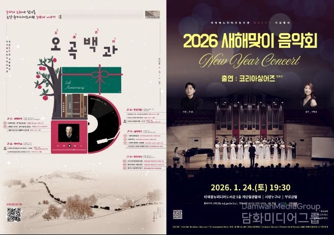 대표 프로그램으로는 오는 24일 오후 7시 30분, 도서관 1층 계단형 관람석에서 열리는 ‘2026 새해맞이 음악회’가 있다. 음악회에는 코리아싱어즈 합창단, 오카리나 연주자 김욱, 클라리네티스트 김예원 등이 출연해 새해의 희망을 전하는 공연을 선보인다.