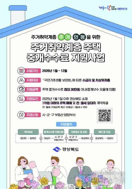 시민행정신문 강갑수 기자 | 상주시는 주거 취약계층의 경제적 부담을 완화하고 안정적인 주거환경 조성을 위하여 2026년 1월부터 “주거 취약계층 주택 중개보수 지원사업”을 시행한다.