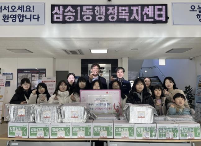 시민행정신문 강갑수 기자 | 고양특례시 덕양구 삼송1동은 지난 20일, YBM잉글루 삼송캠퍼스로부터 겨울철 취약계층 지원을 위한 후원물품으로 김치, 등유를 전달받았다고 밝혔다.