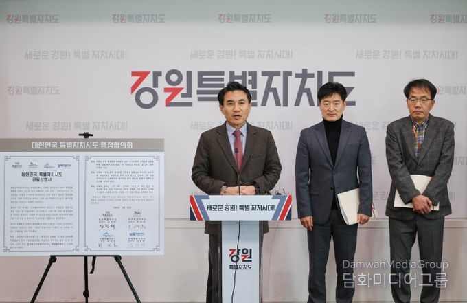 시민행정신문 기자 | 강원, 제주, 세종, 전북으로 구성된 ‘대한민국특별자치시도 행정협의회’(대표회장 : 김진태 강원특별자치도지사)는 1월 21일 4개 특별자치시‧도의 특별법안 조속한 통과와 광역 행정통합 인센티브 부여에 따른 역차별 우려를 담은 공동성명서를 발표했다.