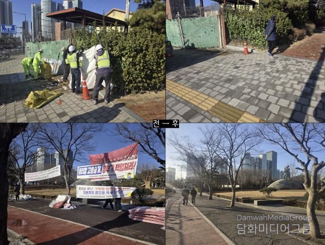 12월 31일 용산경찰서와 사전협의를 통해 해당 구역에 집회활동이 없음을 다시 확인했다. 협의 직후 현장조사를 실시해 기존 설치된 현수막 중 파손상태가 심하고 안전사고 우려가 있는 모든 현수막을 현장에서 즉시 철거했다.