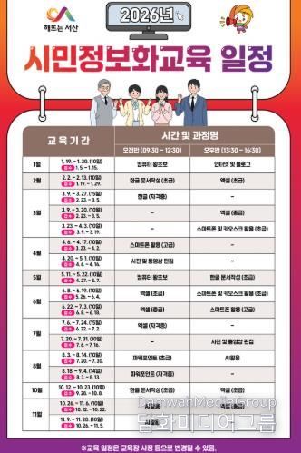 시민행정신문 강갑수 기자 | 서산시는 시민들의 디지털 역량 강화를 위해 2026년 1월부터 11월까지 ‘시민정보화교육’을 연중 운영한다.