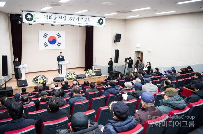 추모식은 유족인사, 추모사, 헌시 낭송, 여성 트리오 성악팀의 추모공연, 헌화 순으로 진행됐다. 특히 한국문인협회 최재건 시인이 박희광 선생을 기리며 직접 지은 추모시를 낭독해 의미를 더했다.