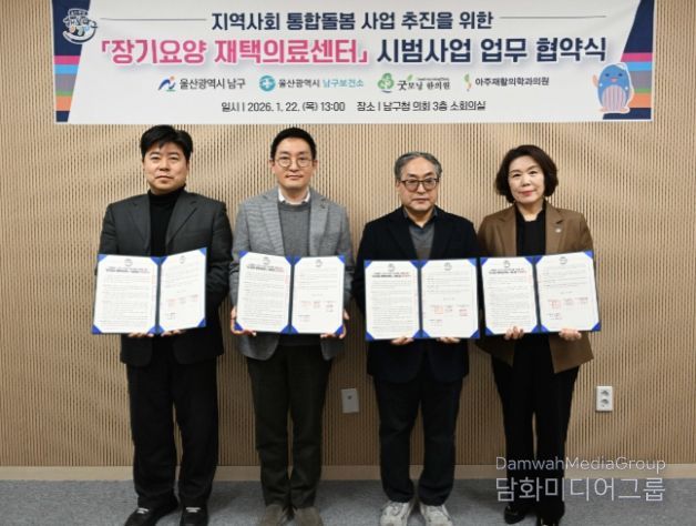 시민행정신문 기자 | 울산 남구는 지역 내 거동불편 어르신들의 건강한 재가생활 지원을 위해 22일 남구청에서 굿모닝한의원, 아주재활의학과의원, 보건소 등과 ‘장기요양 재택의료센터’ 시범사업 업무협약식을 개최했다.
