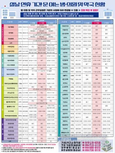 설 연휴 기간 진료가 가능한 병·의원, 약국에 관한 자세한 정보는 거제시 누리집과 거제시 보건소 홈페이지, 거제시에서 운영하는 SNS에서 확인할 수 있으며, 보건복지콜센터, 구급상황관리센터 및 응급의료포털, 응급의료정보제공 앱(App)에서도 안내받을 수 있다.