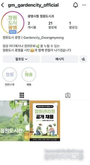 정원도시 광명의 이야기를 시민과 함께 나누기 위해 공식 인스타그램 채널(@gm_gardencity_official)을 23일부터 운영한다.