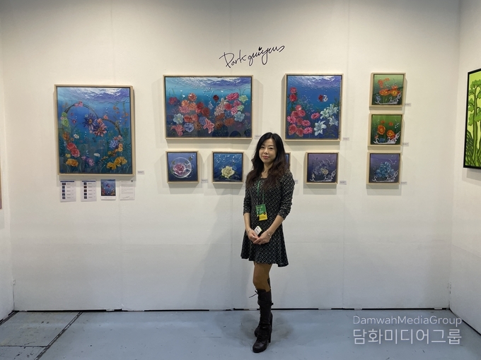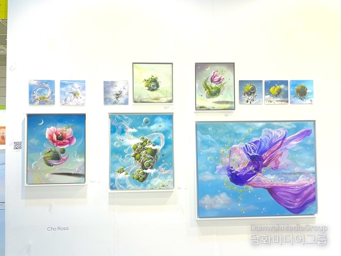 박귀연작가는 생명의 탄생과 자유로움을 주제로 한 혼합매체 작품으로 많은 관람객들의 주목을 끌고 있다.