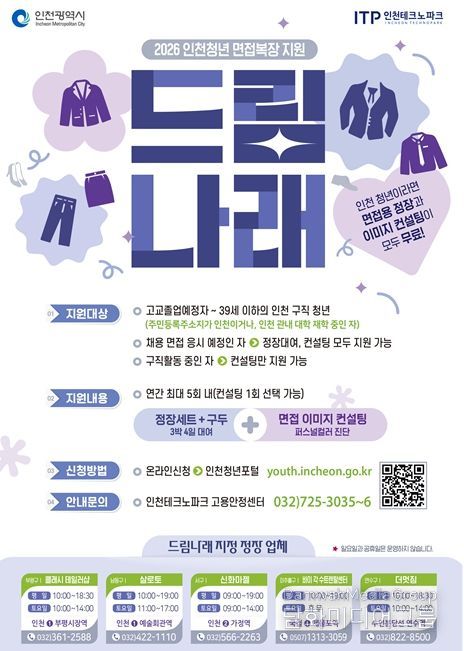 시민행정신문 이세훈 기자 | 인천광역시는 인천 청년들의 구직 비용 부담을 완화하고 실질적인 취업 준비를 지원하기 위해 ‘드림나래(인천청년 면접복장 지원)’ 사업을 확대 추진한다고 밝혔다.