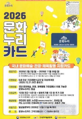 오병창 문화예술과장은 “지원 확대를 통해 문화 취약계층과 청년들이 일상 속에서 문화의 가치를 더 깊이 체감할 수 있기를 바란다”고 말했다.