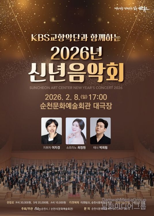 시민행정신문 강갑수 기자 | 순천시는 2026년 새해를 여는 첫 공연으로 대한민국을 대표하는 KBS교향악단 클래식공연을 오는 2월 8일(일) 오후 5시 순천문화예술회관 대극장에서 개최한다고 밝혔다.