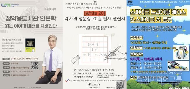 행사는 겨울 독서문화프로그램을 중심으로 △정약용 인문학 특강 △저자 강연 △시민 참여형 체험행사 등이 포함된다.