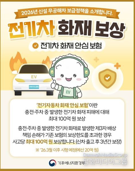 충전·주차 중 발생한 전기차 화재 피해에 대해 최대 100억 원 보상