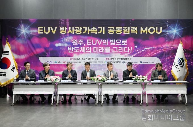 원주시는 오는 27일 원주미래산업진흥원에서 ㈜이솔과 관내 대학 등이 참여하는 ‘EUV 방사광가속기 공동협력 MOU’를 체결한다.