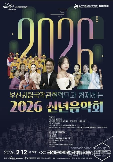 시민행정신문 기자 | 금정문화회관에서는 2월 12일 오후 7시 30분, 금빛누리홀에서 부산시립국악관현악단과 함께하는 '2026 신년음악회’가 개최된다.