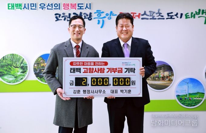 시민행정신문 강갑수 기자 | 태백시는 지난 27일 강훈 행정사무소 박기훈 대표가 태백시청을 방문해 고향사랑기부금 200만 원을 기탁했다고 밝혔다.