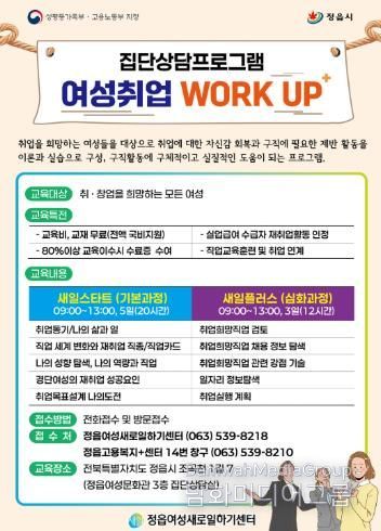 자세한 사항은 정읍여성새로일하기센터로 문의하면 안내받을 수 있다.