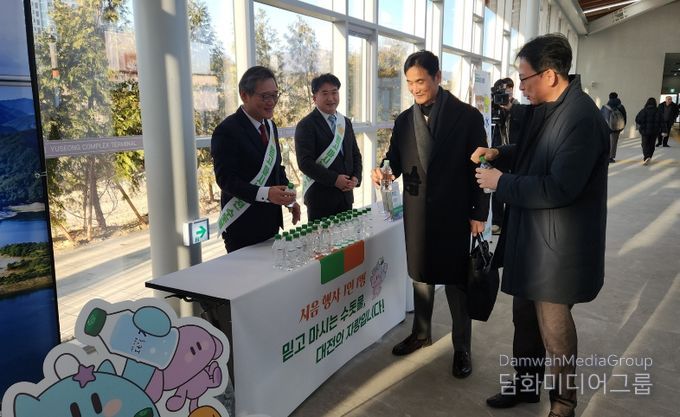 특히, 대전시 공식 캐릭터인 ‘꿈씨패밀리’를 활용한 홍보는 이용객들에게 색다른 즐거움을 더한다. 본부는 상수도 홍보를 위해 자체 제작한 꿈씨패밀리 캐릭터 입간판과 청정 상수원인 대청호 전경을 배경으로 ‘이츠수 포토존’을 조성, 터미널 이용객들이 물을 마시며 사진을 찍고 추억을 남길 수 있도록 했다.