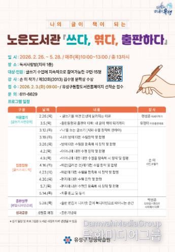 정용래 유성구청장은 “이번 프로그램이 주민의 자기표현 역량과 글쓰기 능력 향상에 도움이 되길 바란다”라며 “도서관이 단순히 책을 읽는 공간이 아닌 생활 문화 거점으로 자리 잡을 수 있도록 지원하겠다”라고 말했다.