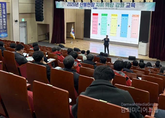 전남도는 29일 동부지역본부 이순신 강당에서 22개 시군 산림부서장과 담당 팀장 등 60여 명을 대상으로 산림청 주관 ‘2026년 산불현장 지휘 역량강화 교육’을 했다.