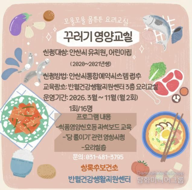 시민행정신문 기자 | 안산시 상록수보건소 반월건강생활지원센터는 오는 3월부터 11월까지 관내 6~7세 아동을 대상으로 ‘꾸러기 영양교실’을 운영한다고 30일 밝혔다.