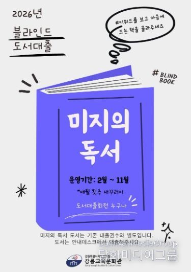시민행정신문 기자 | 강릉교육문화관은 2026년 2월부터 11월까지 매월 블라인드 북 대출 서비스 ‘미지의 독서’를 운영한다고 밝혔다.