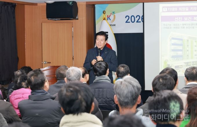 이날 박범인 군수를 비롯해 군의회, 지역 기관단체장, 주민 등 총 100여 명이 참석했으며 지역 발전을 위해 노력한 유공자 3명에게 표창패를 수여 후 2026년 군정 추진방향 설명과 함께 주민 의견을 직접 듣는 시간을 가졌다.