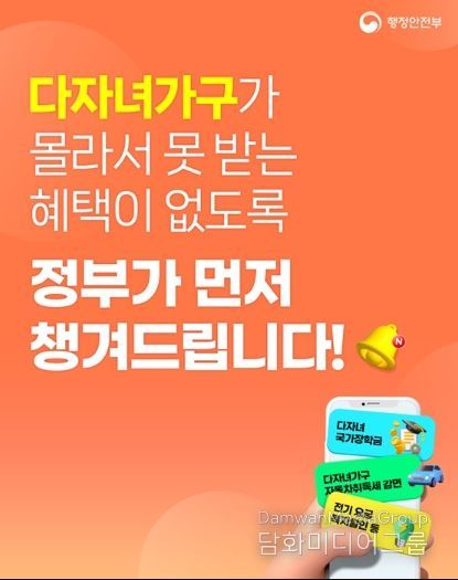 시민행정신문 장규호 기자 | ■ 다자녀가구가 몰라서 못 받는 혜택이 없도록 정부가 먼저 챙겨드립니다!