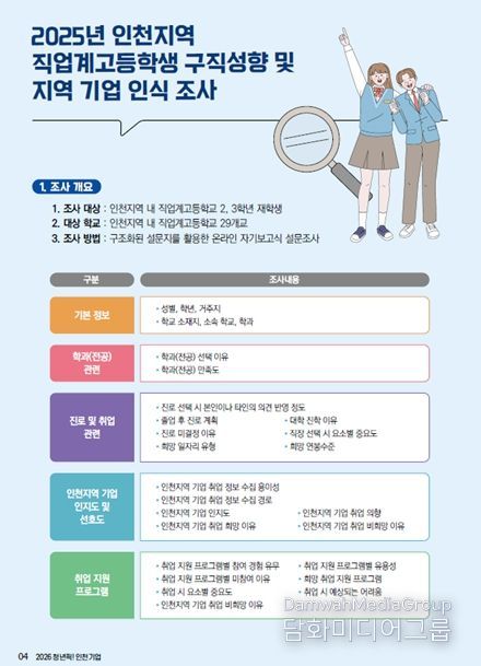 김세헌 시 청년정책담당관은 “이번 가이드북이 인천 청년과 지역 우수기업 간 정보 격차를 해소하는 가교 역할을 하길 기대한다”며, “청년들이 인천에서 양질의 일자리를 찾고 안정적으로 정착할 수 있도록 다양한 정책적 지원을 이어가겠다”라고 밝혔다.
