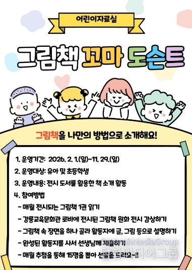 시민행정신문 기자 | 강릉교육문화관(관장 박기현)은 2026년 2월부터 11월까지 어린이 대상 참여형 독서 프로그램 ‘그림책 꼬마 도슨트’를 운영한다.